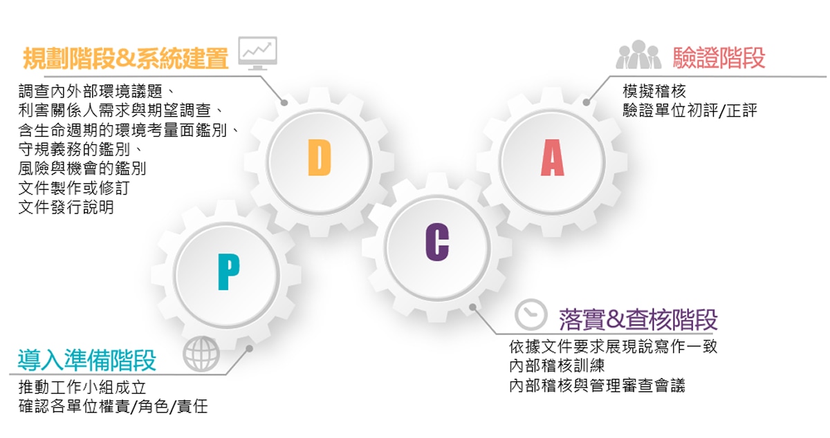 導入ISO 14001不僅可建立全員的環境管理共識,培養內部管理與稽核人員專業能力,更能提升企業因應突發事件的應變力,確保運作合規並強化國際競爭力。本公司提供專業顧問輔導,協助客戶依循標準進行現況盤點、制度建置、教育訓練、內部稽核與驗證準備,確保企業順利通過認證,透過ISO 14001的導入,企業不僅能取得國際認可,更能展現對環境保護與永續發展的承諾,成為市場中值得信賴的合作夥伴。