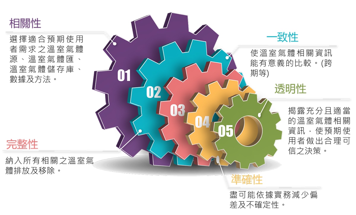 • 完整性:涵蓋所有重要的排放源與移除活動;
