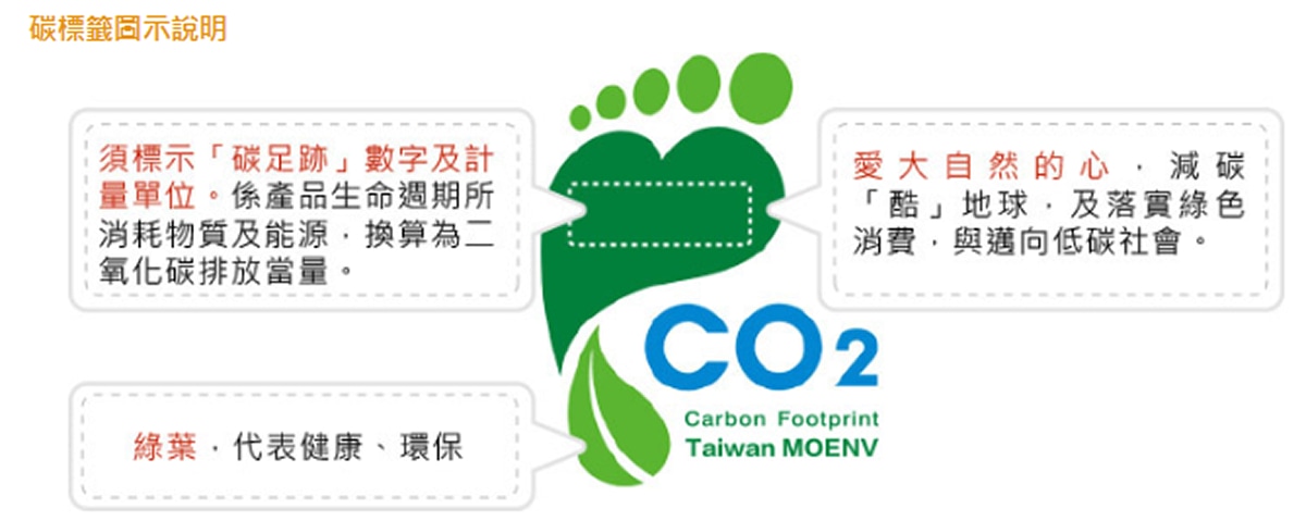 臺灣自2009年起,由環境部(原行政院環境保護署)參考國際發展經驗,正式推動 碳足跡標籤(Carbon Footprint Label,簡稱碳標籤)制度。此制度的核心理念在於透過 生命週期評估(Life Cycle Assessment, LCA) 方法,揭露產品從原料取得、製造加工、運輸配送、使用到廢棄回收各階段所產生的溫室氣體排放量,並將其統一換算為二氧化碳當量(CO₂e)數值,以標章方式對外公開。藉由資訊透明化,企業能主動改善高排放製程、降低產品碳足跡,消費者則可透過標章支持低碳產品,形成「生產端減碳 × 消費端選擇」的雙向推力,推動低碳經濟與永續消費模式。